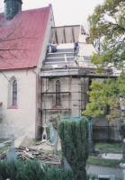 Kostel sv. Michala- kněžiště v lešení- pokládání nové střechy