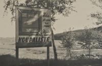 Budování koupaliště- transparent vyzývající k pomoci