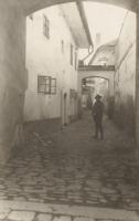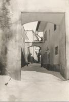 Hradební ulice s rampouchy v zimě